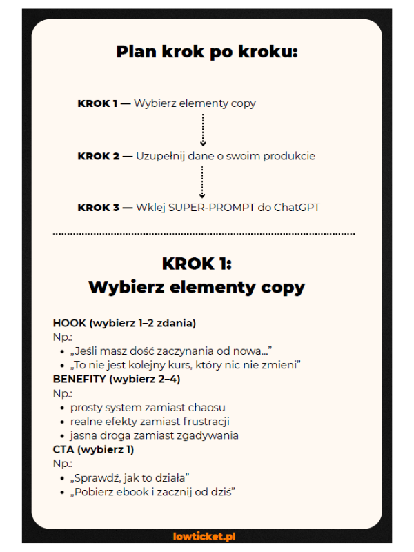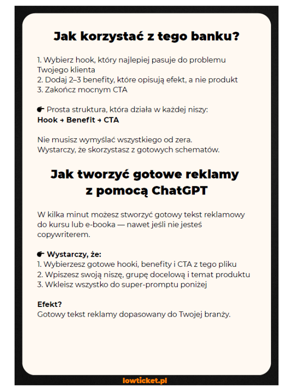 Bank hooków, benefitów i CTA do sprzedaży kursów i e-booków